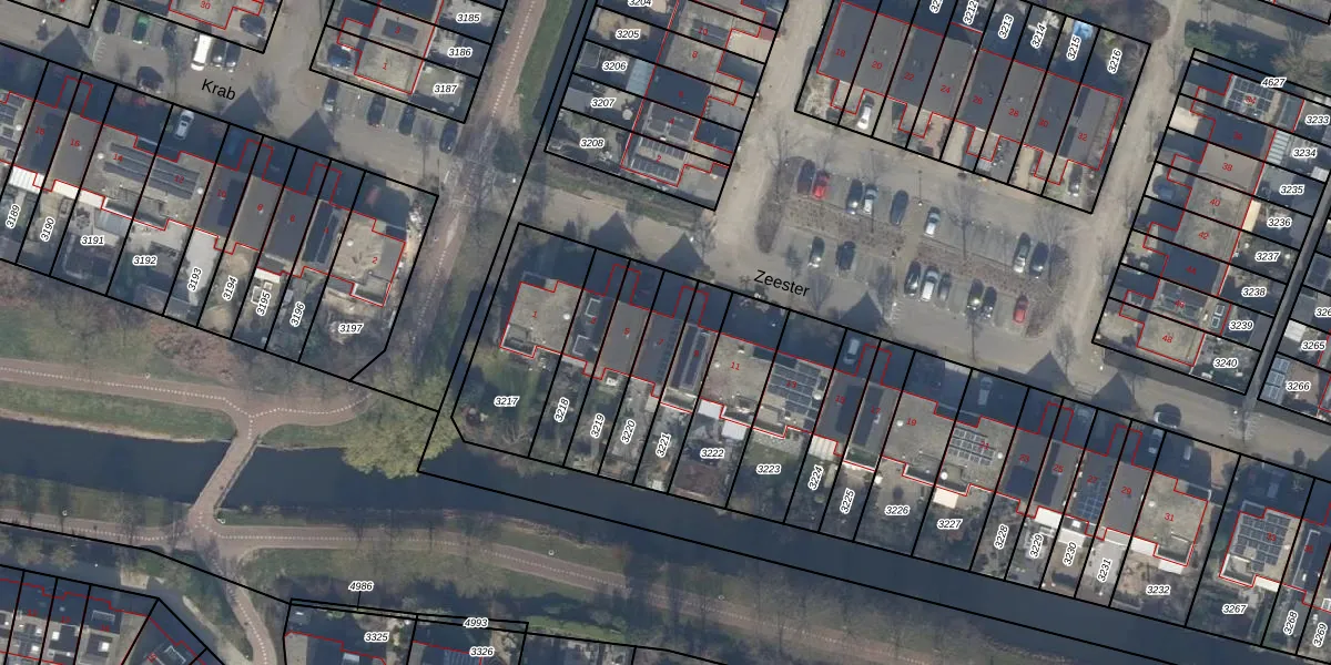 Gebruik de zoekbalk of klik op een perceel voor informatie over de adressen binnen dit perceel.
