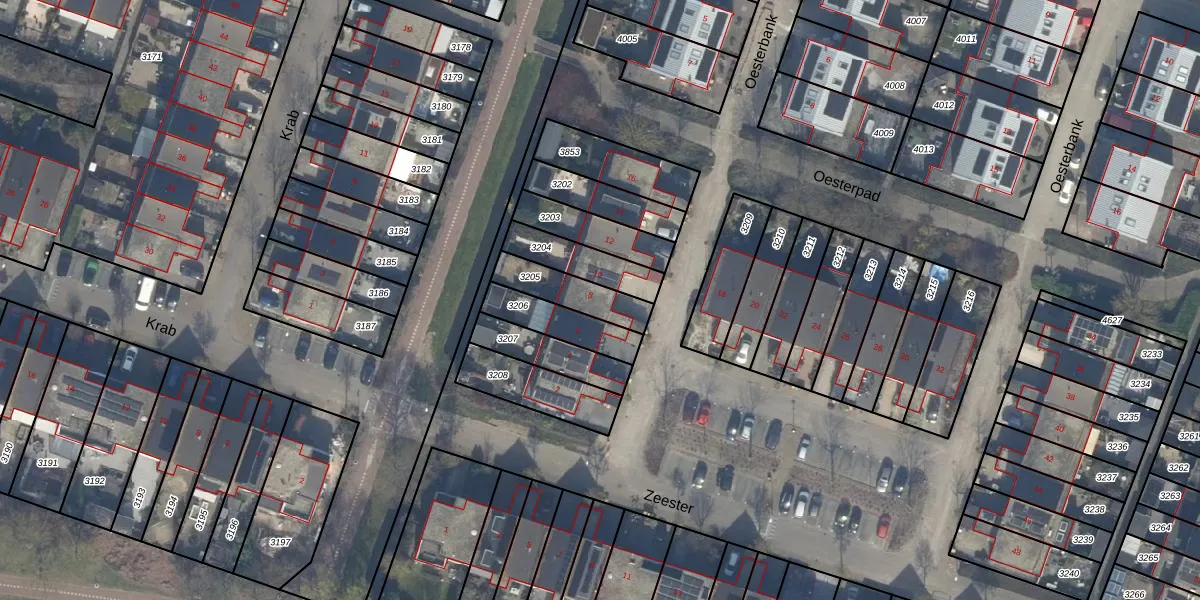 Gebruik de zoekbalk of klik op een perceel voor informatie over de adressen binnen dit perceel.