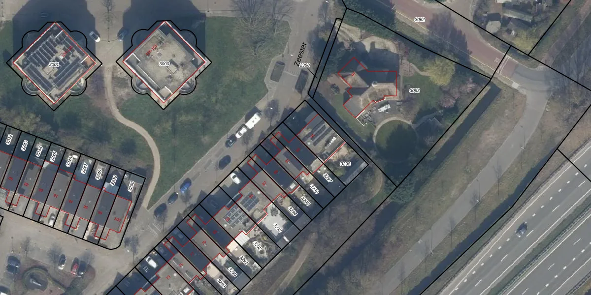 Gebruik de zoekbalk of klik op een perceel voor informatie over de adressen binnen dit perceel.