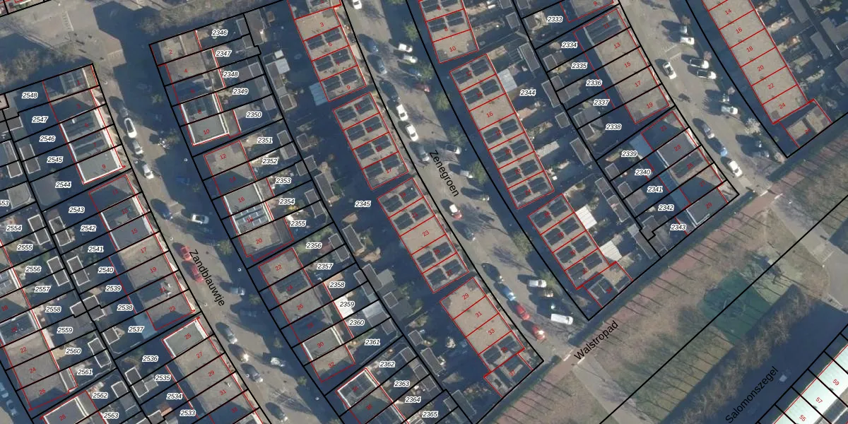 Het perceel waarop Zenegroen 21 staat heeft een oppervlakte van 2453 m². Dit is een zeer groot perceel. De perceeloppervlakte wordt geregistreerd door het Kadaster. Gedetailleerde informatie over de maten van dit perceel kunt u vinden in het rapport Kadastrale kaart met maatvoering van Zenegroen 21.