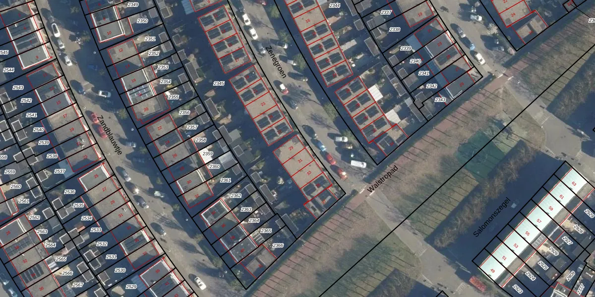 Zenegroen 29 is gelegen op kadastraal perceel KWK01D2345. Deze kadastrale aanduiding is uniek en wordt gebruikt door het Kadaster om eigendomsrechten en andere zakelijke rechten vast te leggen. Het perceel maakt onderdeel uit van de kadastrale gemeente Katwijk.