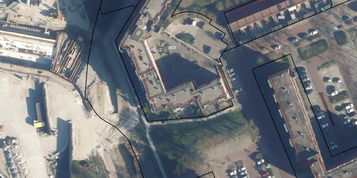 Het perceel waarop Zonnebloemstraat 228 staat heeft een oppervlakte van 4326 m². Dit is een zeer groot perceel. De perceeloppervlakte wordt geregistreerd door het Kadaster. Gedetailleerde informatie over de maten van dit perceel kunt u vinden in het rapport Kadastrale kaart met maatvoering van Zonnebloemstraat 228.
