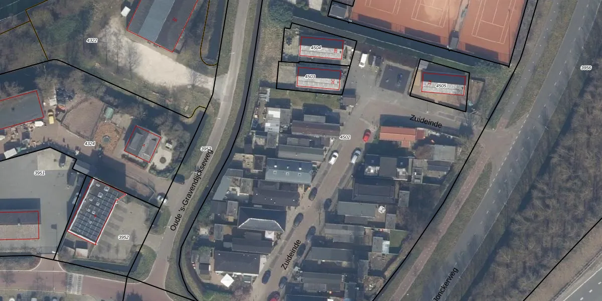 Zuideinde 4 is gelegen op kadastraal perceel KWK01C4502. Deze kadastrale aanduiding is uniek en wordt gebruikt door het Kadaster om eigendomsrechten en andere zakelijke rechten vast te leggen. Het perceel maakt onderdeel uit van de kadastrale gemeente Katwijk.