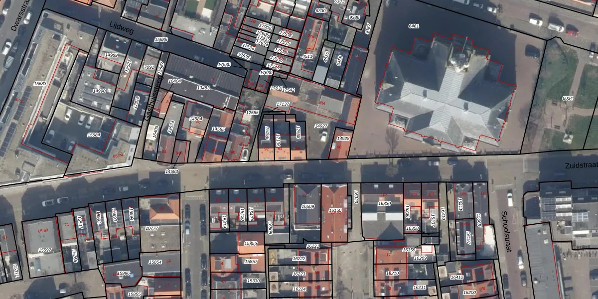 Het perceel waarop Zuidstraat 96 staat heeft een oppervlakte van 80 m². Dit is een klein perceel. De perceeloppervlakte wordt geregistreerd door het Kadaster. Gedetailleerde informatie over de maten van dit perceel kunt u vinden in het rapport Kadastrale kaart met maatvoering van Zuidstraat 96.