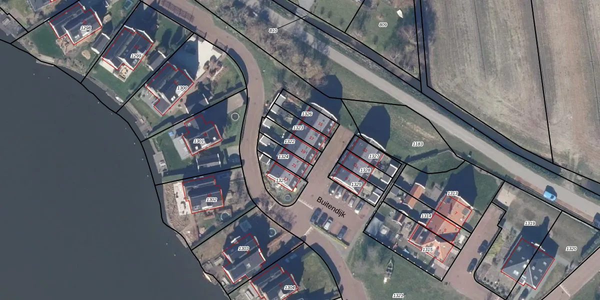 Het perceel waarop Buitendijk 19 staat heeft een oppervlakte van 121 m². Dit is een middelgroot perceel. De perceeloppervlakte wordt geregistreerd door het Kadaster. Gedetailleerde informatie over de maten van dit perceel kunt u vinden in het rapport Kadastrale kaart met maatvoering van Buitendijk 19.