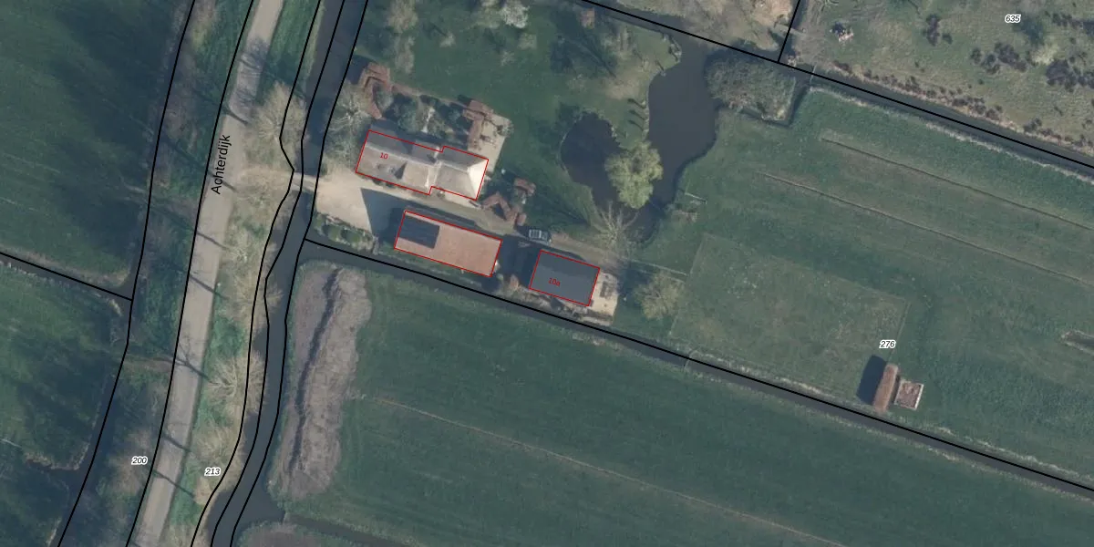 Het perceel waarop Achterdijk 10-a staat heeft een oppervlakte van 1,6 ha. Dit is een zeer groot perceel. De perceeloppervlakte wordt geregistreerd door het Kadaster. Gedetailleerde informatie over de maten van dit perceel kunt u vinden in het rapport Kadastrale kaart met maatvoering van Achterdijk 10-a.