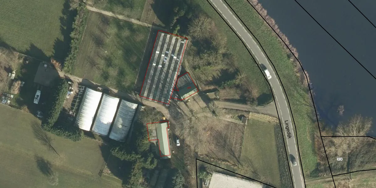 Het perceel waarop Lingedijk 79-a staat heeft een oppervlakte van 3,2 ha. Dit is een zeer groot perceel. De perceeloppervlakte wordt geregistreerd door het Kadaster. Gedetailleerde informatie over de maten van dit perceel kunt u vinden in het rapport Kadastrale kaart met maatvoering van Lingedijk 79-a.