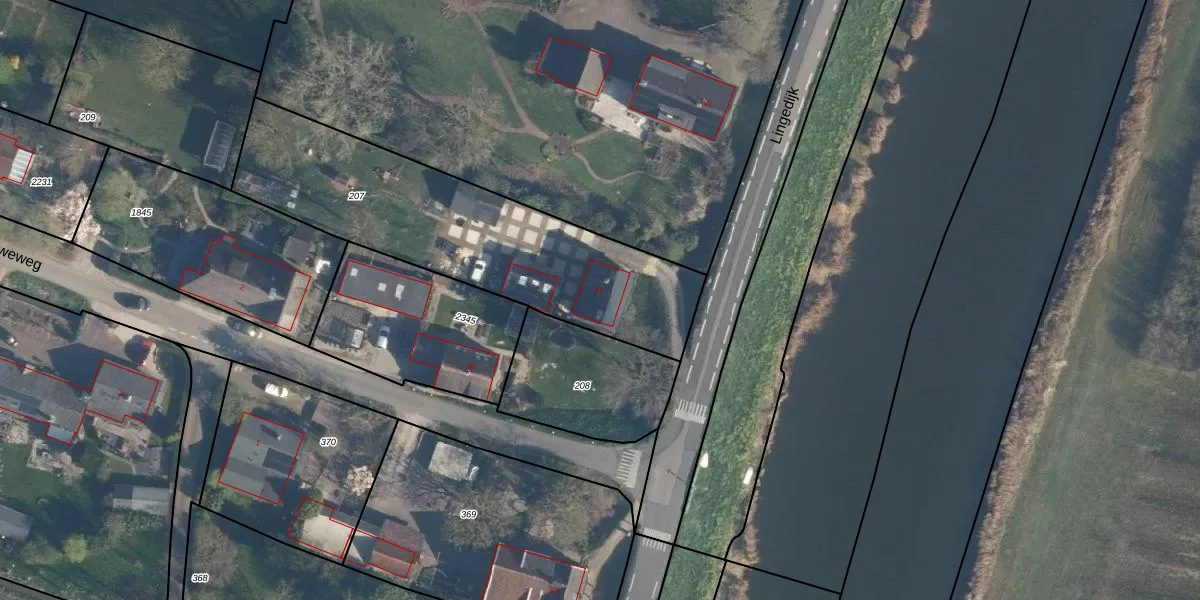 Het perceel waarop Lingedijk 97 staat heeft een oppervlakte van 1275 m². Dit is een zeer groot perceel. De perceeloppervlakte wordt geregistreerd door het Kadaster. Gedetailleerde informatie over de maten van dit perceel kunt u vinden in het rapport Kadastrale kaart met maatvoering van Lingedijk 97.