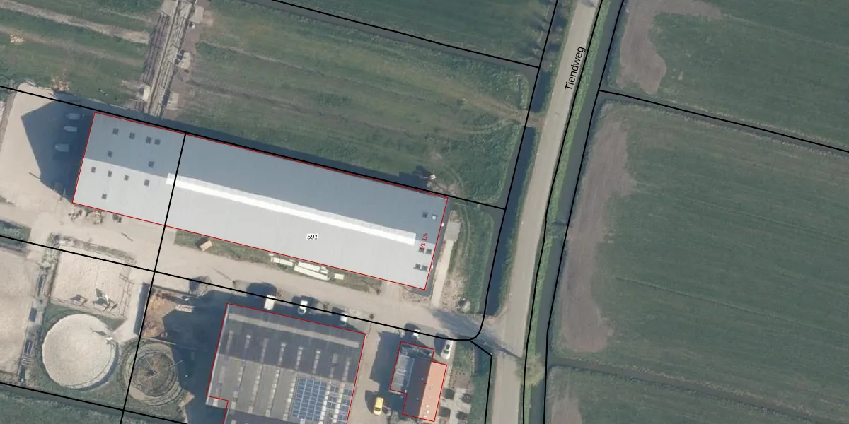 Het perceel waarop Tiendweg 1-5 staat heeft een oppervlakte van 2570 m². Dit is een zeer groot perceel. De perceeloppervlakte wordt geregistreerd door het Kadaster. Gedetailleerde informatie over de maten van dit perceel kunt u vinden in het rapport Kadastrale kaart met maatvoering van Tiendweg 1-5.