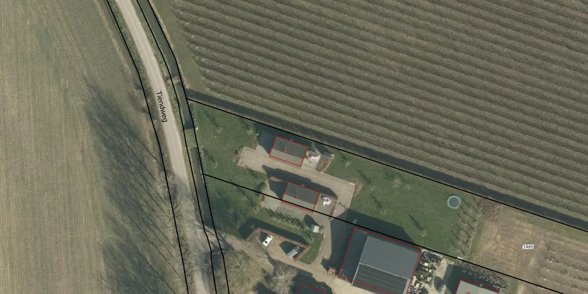 Het perceel waarop Tiendweg 8 staat heeft een oppervlakte van 5410 m². Dit is een zeer groot perceel. De perceeloppervlakte wordt geregistreerd door het Kadaster. Gedetailleerde informatie over de maten van dit perceel kunt u vinden in het rapport Kadastrale kaart met maatvoering van Tiendweg 8.