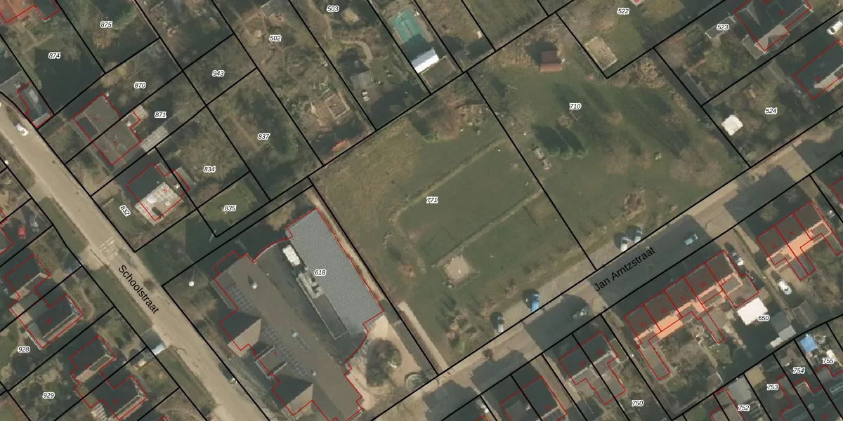 Het perceel waarop Jan Arntzstraat 38 staat heeft een oppervlakte van 2488 m². Dit is een zeer groot perceel. De perceeloppervlakte wordt geregistreerd door het Kadaster. Gedetailleerde informatie over de maten van dit perceel kunt u vinden in het rapport Kadastrale kaart met maatvoering van Jan Arntzstraat 38.