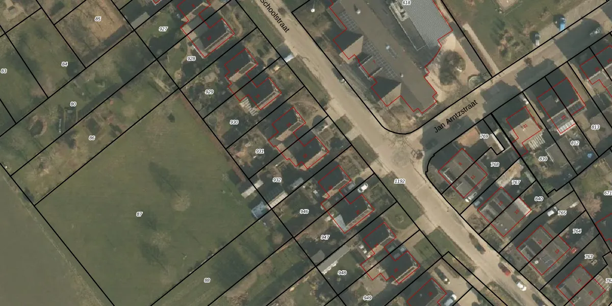 Het perceel waarop Schoolstraat 18 staat heeft een oppervlakte van 407 m². Dit is een groot perceel. De perceeloppervlakte wordt geregistreerd door het Kadaster. Gedetailleerde informatie over de maten van dit perceel kunt u vinden in het rapport Kadastrale kaart met maatvoering van Schoolstraat 18.