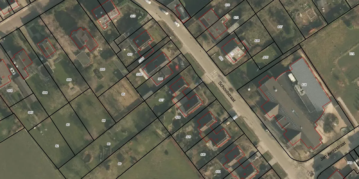Het perceel waarop Schoolstraat 8 staat heeft een oppervlakte van 376 m². Dit is een groot perceel. De perceeloppervlakte wordt geregistreerd door het Kadaster. Gedetailleerde informatie over de maten van dit perceel kunt u vinden in het rapport Kadastrale kaart met maatvoering van Schoolstraat 8.
