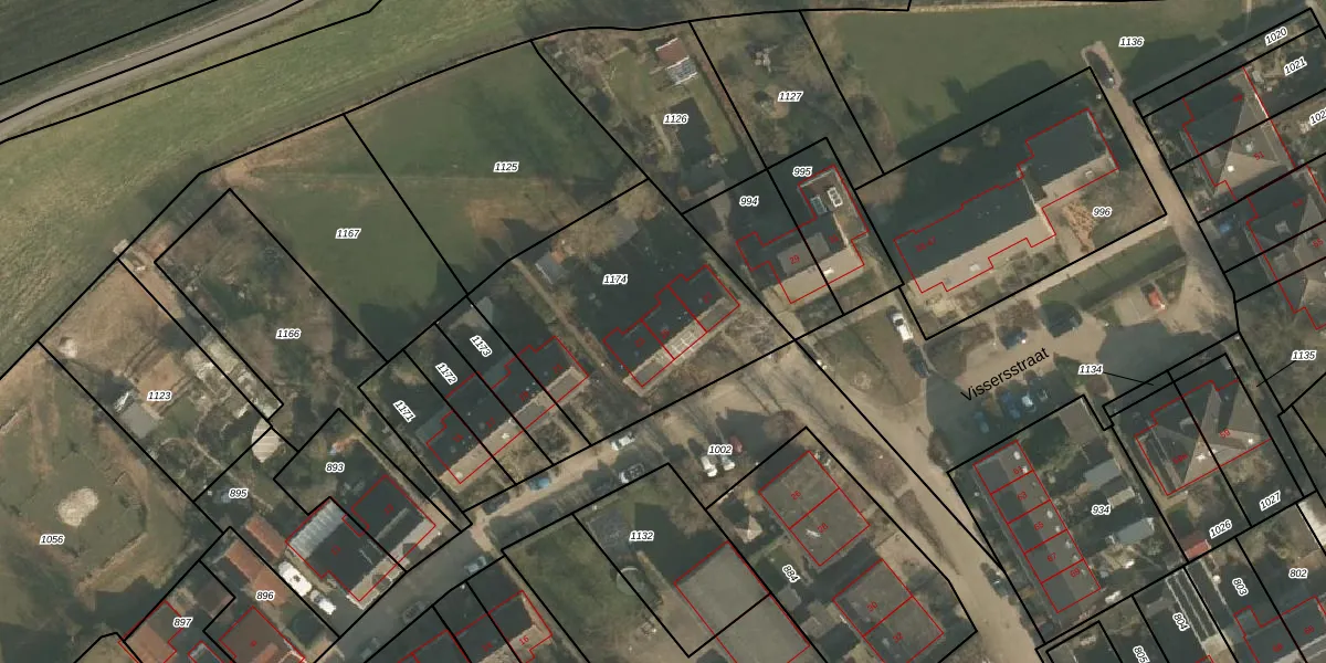 Het perceel waarop Vissersstraat 25 staat heeft een oppervlakte van 1060 m². Dit is een zeer groot perceel. De perceeloppervlakte wordt geregistreerd door het Kadaster. Gedetailleerde informatie over de maten van dit perceel kunt u vinden in het rapport Kadastrale kaart met maatvoering van Vissersstraat 25.