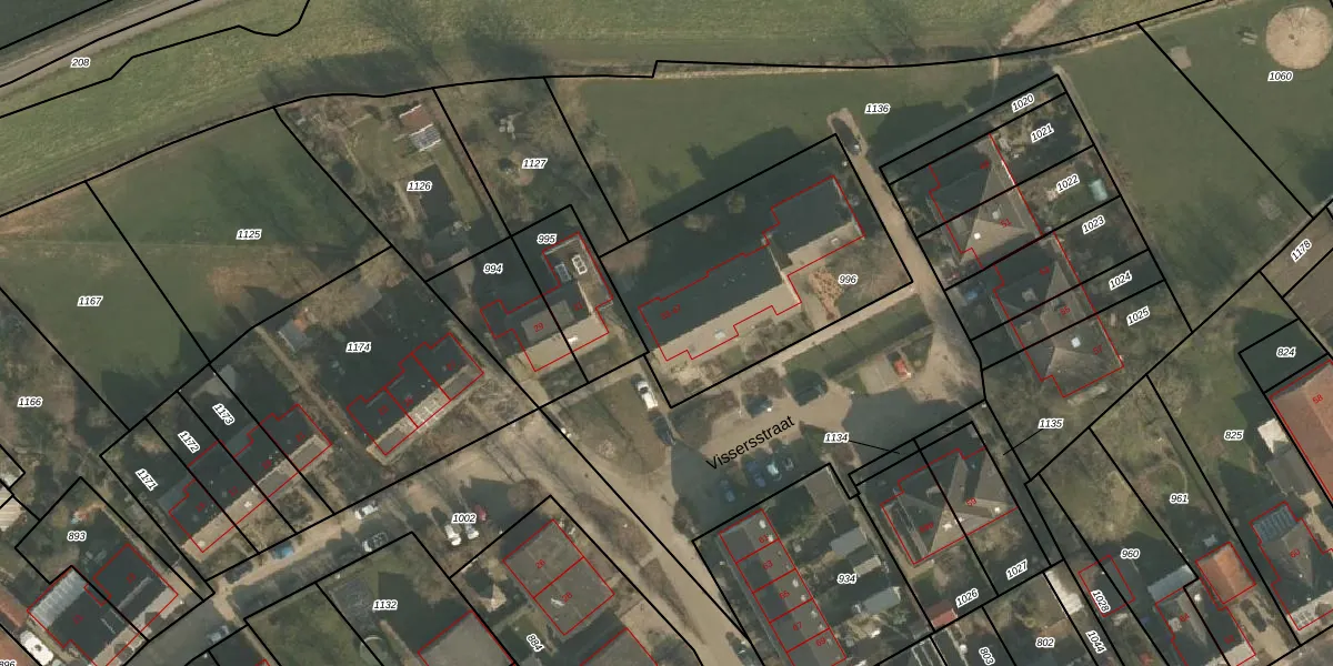 Vissersstraat 33 is gelegen op kadastraal perceel LEU00B996. Deze kadastrale aanduiding is uniek en wordt gebruikt door het Kadaster om eigendomsrechten en andere zakelijke rechten vast te leggen. Het perceel maakt onderdeel uit van de kadastrale gemeente Leuth.