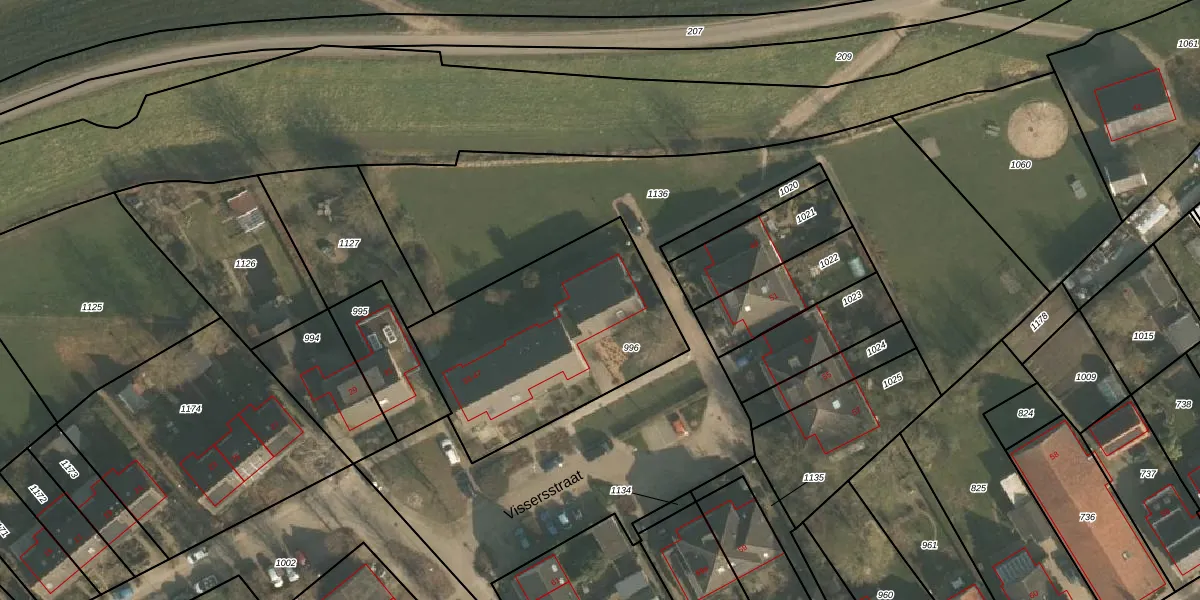 Het perceel waarop Vissersstraat 45 staat heeft een oppervlakte van 1010 m². Dit is een zeer groot perceel. De perceeloppervlakte wordt geregistreerd door het Kadaster. Gedetailleerde informatie over de maten van dit perceel kunt u vinden in het rapport Kadastrale kaart met maatvoering van Vissersstraat 45.