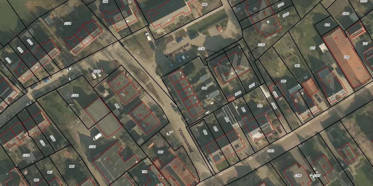 Het perceel waarop Vissersstraat 65 staat heeft een oppervlakte van 739 m². Dit is een groot perceel. De perceeloppervlakte wordt geregistreerd door het Kadaster. Gedetailleerde informatie over de maten van dit perceel kunt u vinden in het rapport Kadastrale kaart met maatvoering van Vissersstraat 65.