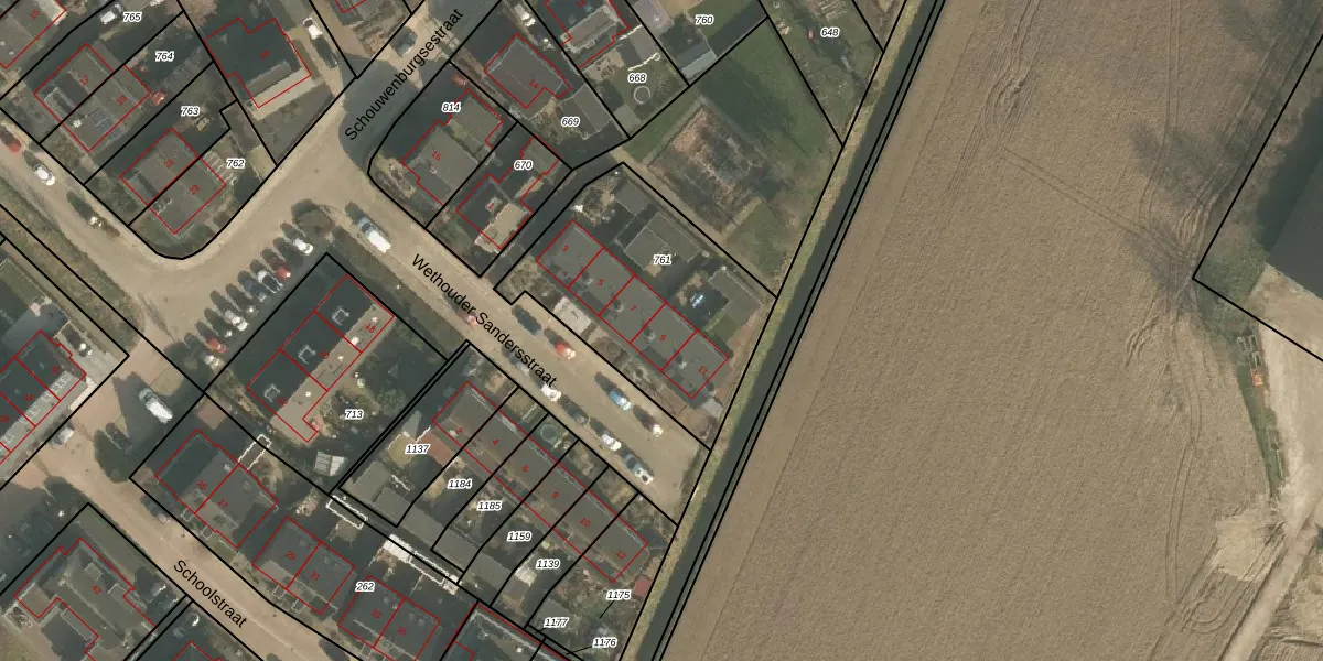 Het perceel waarop Wethouder Sandersstraat 9 staat heeft een oppervlakte van 895 m². Dit is een groot perceel. De perceeloppervlakte wordt geregistreerd door het Kadaster. Gedetailleerde informatie over de maten van dit perceel kunt u vinden in het rapport Kadastrale kaart met maatvoering van Wethouder Sandersstraat 9.