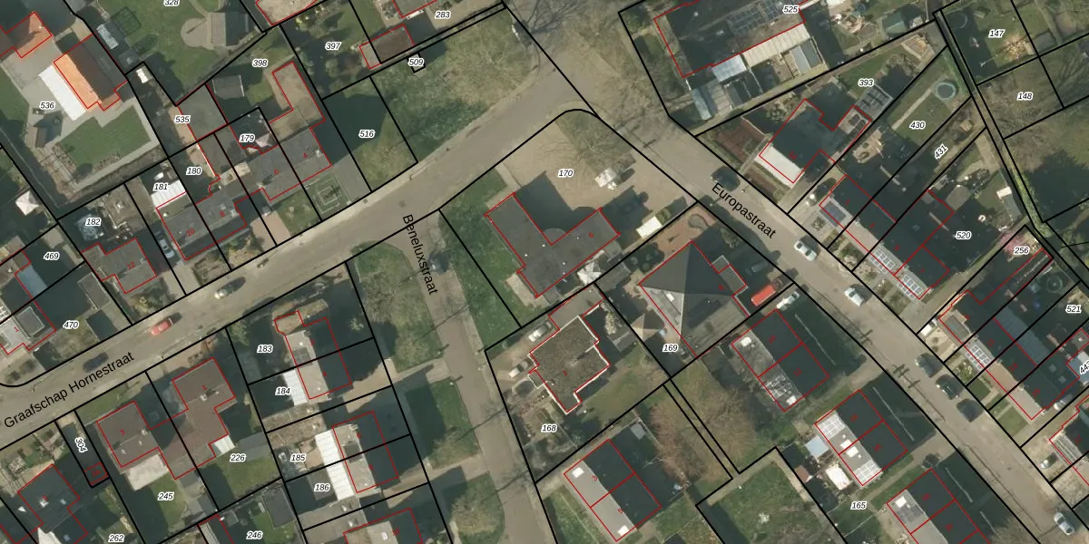 Het perceel waarop Europastraat 6-a staat heeft een oppervlakte van 994 m². Dit is een groot perceel. De perceeloppervlakte wordt geregistreerd door het Kadaster. Gedetailleerde informatie over de maten van dit perceel kunt u vinden in het rapport Kadastrale kaart met maatvoering van Europastraat 6-a.