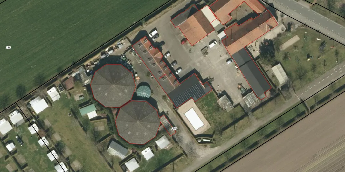 Het perceel waarop Grathemerweg 16-a staat heeft een oppervlakte van 1,5 ha. Dit is een zeer groot perceel. De perceeloppervlakte wordt geregistreerd door het Kadaster. Gedetailleerde informatie over de maten van dit perceel kunt u vinden in het rapport Kadastrale kaart met maatvoering van Grathemerweg 16-a.