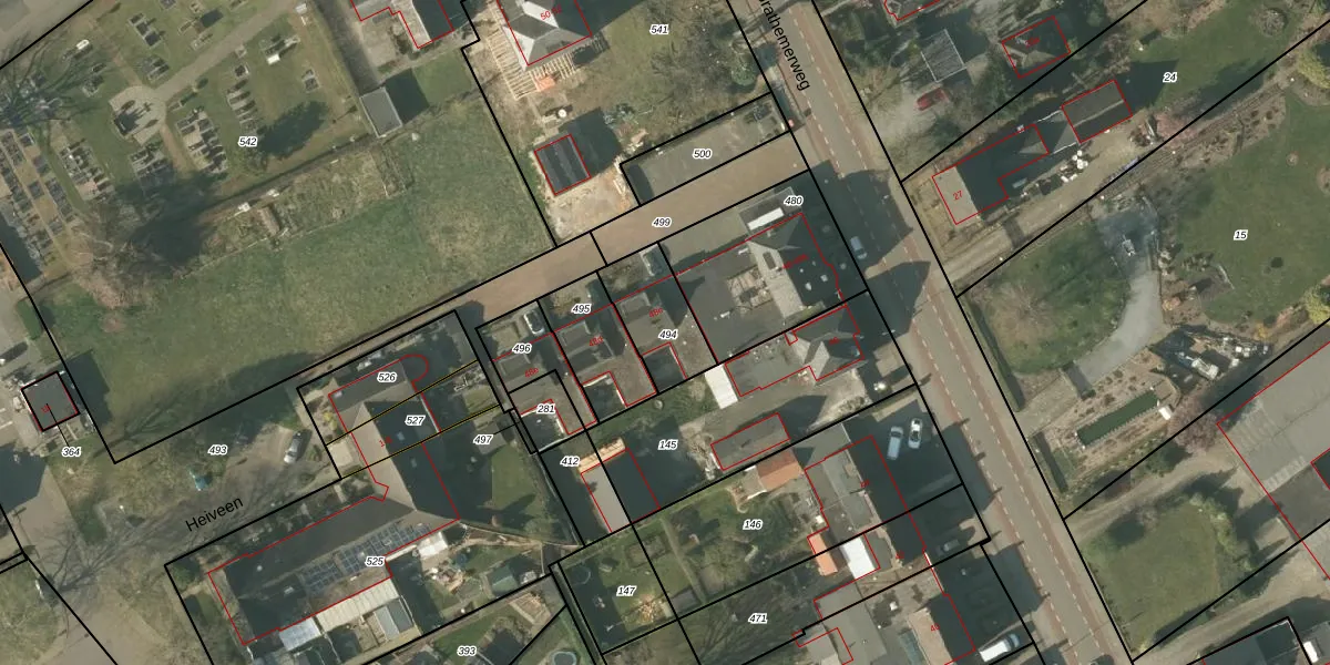 Het adres is gelegen op perceel 494 in de sectie E en de kadastrale gemeente Grathem. De kadastrale aanduiding is aldus GTM00-E-494. De gemiddelde perceelgrootte in Grathem is 1456,17 m². Dit perceel is kleiner: de perceeloppervlakte bedraagt 210 m². De grootste perceeloppervlakte in de kadastrale gemeente is 11,3 ha. De kleinste oppervlakte bedraagt 0 m². Dit is het enige adres dat aanwezig is op het perceel. De huidige grenzen van het perceel zijn digitaal in de Basisregistratie Kadaster (BRK) geregistreerd op 04-02-2011.