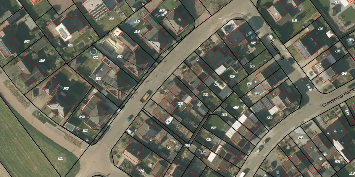 Het perceel waarop Kerkstraat 14 staat heeft een oppervlakte van 533 m². Dit is een groot perceel. De perceeloppervlakte wordt geregistreerd door het Kadaster. Gedetailleerde informatie over de maten van dit perceel kunt u vinden in het rapport Kadastrale kaart met maatvoering van Kerkstraat 14.