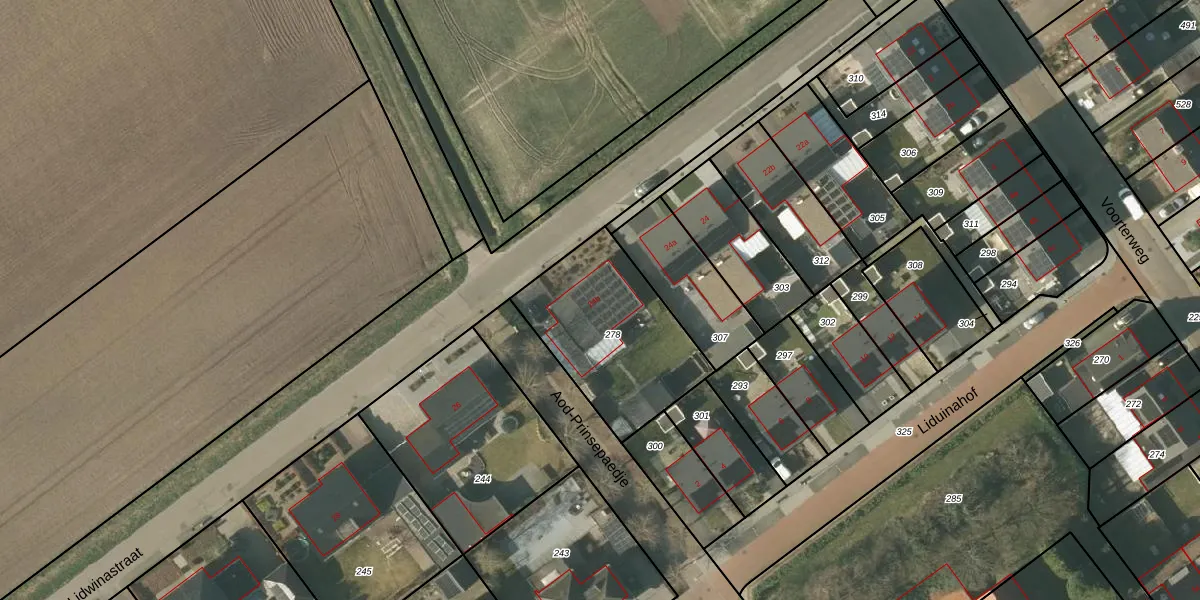 Het perceel waarop Lidwinastraat 24-b staat heeft een oppervlakte van 605 m². Dit is een groot perceel. De perceeloppervlakte wordt geregistreerd door het Kadaster. Gedetailleerde informatie over de maten van dit perceel kunt u vinden in het rapport Kadastrale kaart met maatvoering van Lidwinastraat 24-b.