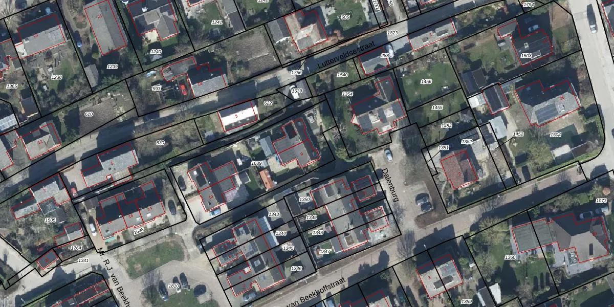 Het perceel waarop Dalenburg 9 staat heeft een oppervlakte van 979 m². Dit is een groot perceel. De perceeloppervlakte wordt geregistreerd door het Kadaster. Gedetailleerde informatie over de maten van dit perceel kunt u vinden in het rapport Kadastrale kaart met maatvoering van Dalenburg 9.