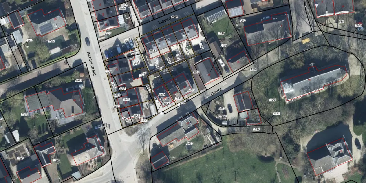 Het perceel waarop Daver 30 staat heeft een oppervlakte van 233 m². Dit is een middelgroot perceel. De perceeloppervlakte wordt geregistreerd door het Kadaster. Gedetailleerde informatie over de maten van dit perceel kunt u vinden in het rapport Kadastrale kaart met maatvoering van Daver 30.