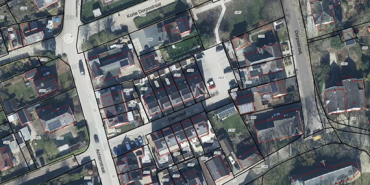 Het perceel waarop Daverhof 7 staat heeft een oppervlakte van 156 m². Dit is een middelgroot perceel. De perceeloppervlakte wordt geregistreerd door het Kadaster. Gedetailleerde informatie over de maten van dit perceel kunt u vinden in het rapport Kadastrale kaart met maatvoering van Daverhof 7.