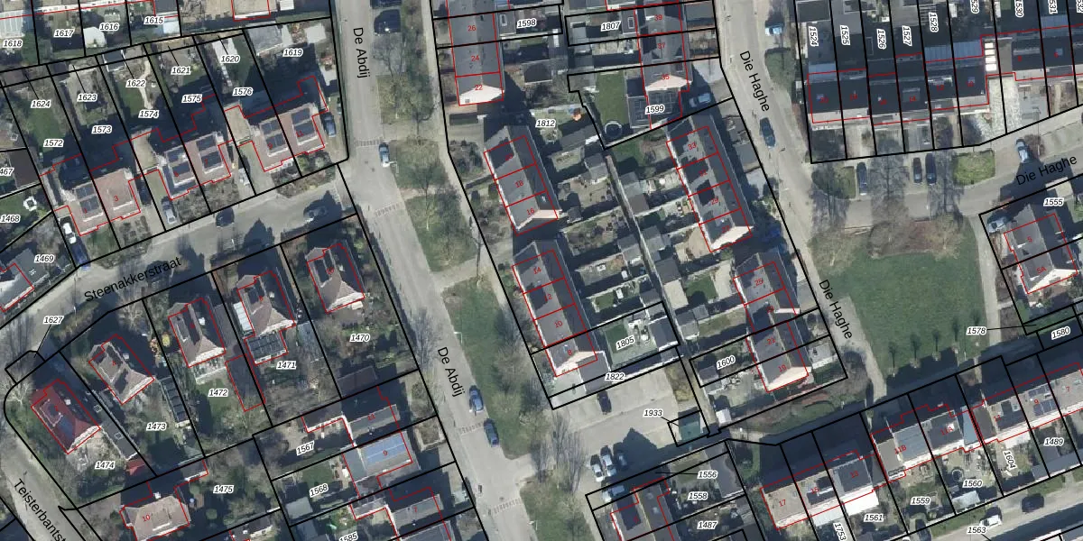 Het perceel waarop De Abdij 14 staat heeft een oppervlakte van 4340 m². Dit is een zeer groot perceel. De perceeloppervlakte wordt geregistreerd door het Kadaster. Gedetailleerde informatie over de maten van dit perceel kunt u vinden in het rapport Kadastrale kaart met maatvoering van De Abdij 14.