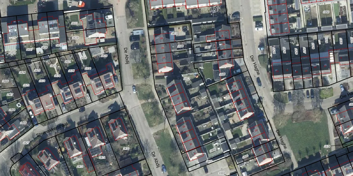Het perceel waarop De Abdij 20 staat heeft een oppervlakte van 4340 m². Dit is een zeer groot perceel. De perceeloppervlakte wordt geregistreerd door het Kadaster. Gedetailleerde informatie over de maten van dit perceel kunt u vinden in het rapport Kadastrale kaart met maatvoering van De Abdij 20.
