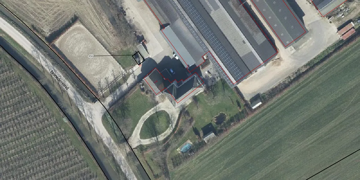 Het perceel waarop Noordereind 4 staat heeft een oppervlakte van 4,9 ha. Dit is een zeer groot perceel. De perceeloppervlakte wordt geregistreerd door het Kadaster. Gedetailleerde informatie over de maten van dit perceel kunt u vinden in het rapport Kadastrale kaart met maatvoering van Noordereind 4.