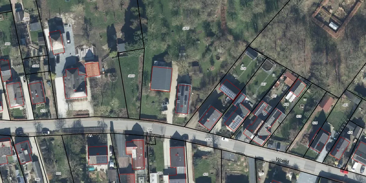 Het perceel waarop Woerd 22 staat heeft een oppervlakte van 6090 m². Dit is een zeer groot perceel. De perceeloppervlakte wordt geregistreerd door het Kadaster. Gedetailleerde informatie over de maten van dit perceel kunt u vinden in het rapport Kadastrale kaart met maatvoering van Woerd 22.