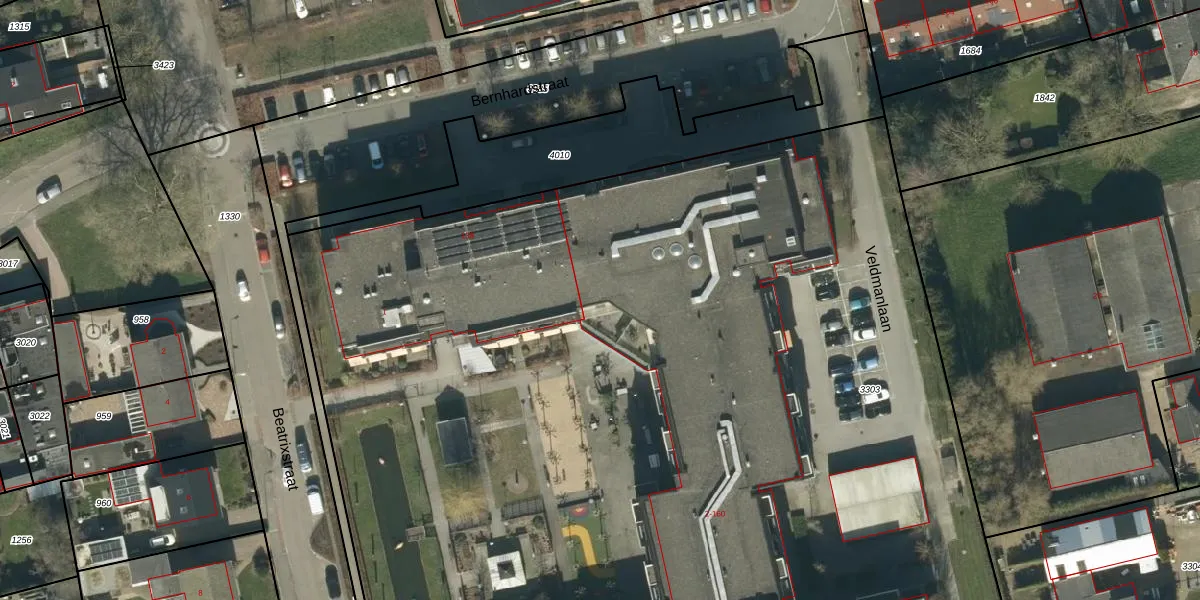 Het perceel waarop Bernhardstraat 118 staat heeft een oppervlakte van 1,2 ha. Dit is een zeer groot perceel. De perceeloppervlakte wordt geregistreerd door het Kadaster. Gedetailleerde informatie over de maten van dit perceel kunt u vinden in het rapport Kadastrale kaart met maatvoering van Bernhardstraat 118.