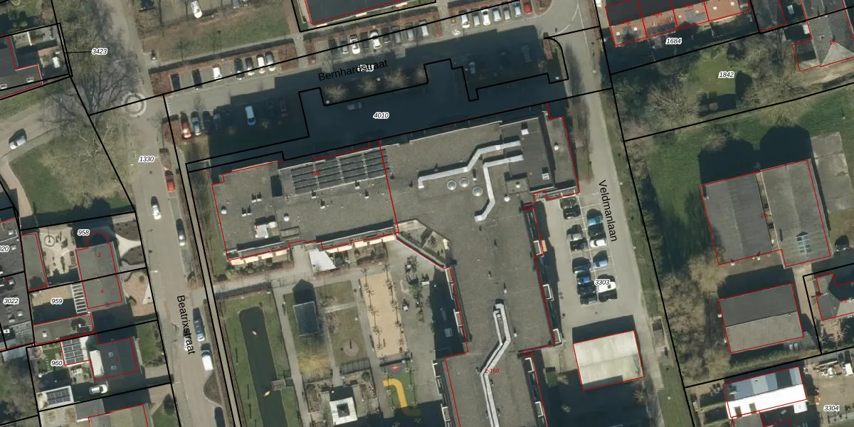 Het perceel waarop Bernhardstraat 120 staat heeft een oppervlakte van 1,2 ha. Dit is een zeer groot perceel. De perceeloppervlakte wordt geregistreerd door het Kadaster. Gedetailleerde informatie over de maten van dit perceel kunt u vinden in het rapport Kadastrale kaart met maatvoering van Bernhardstraat 120.
