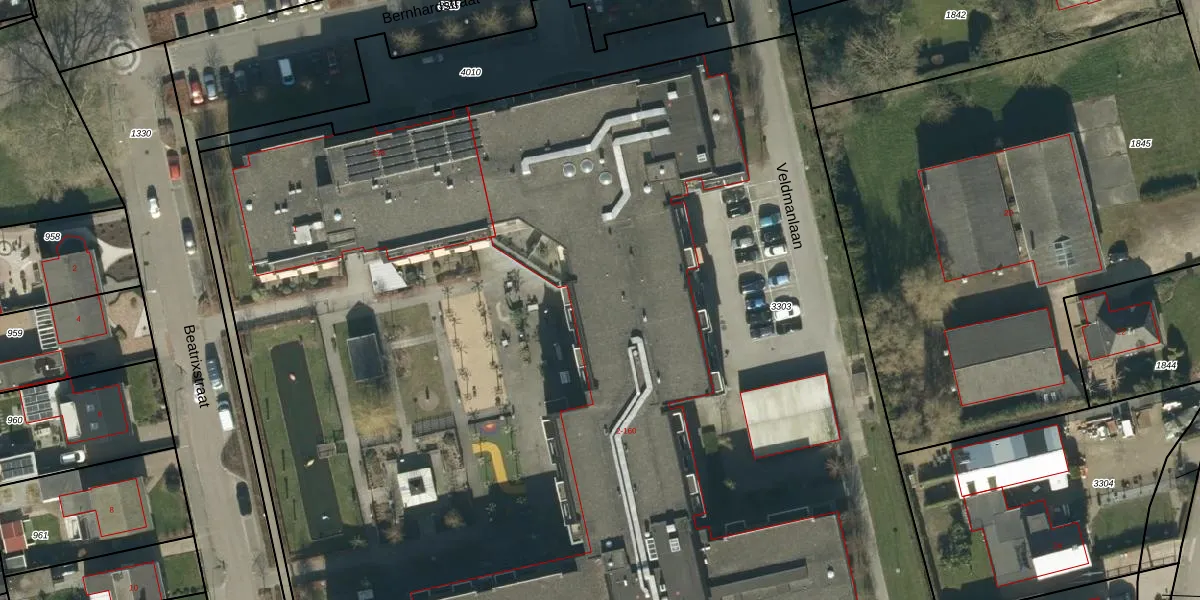 Het perceel waarop Bernhardstraat 144 staat heeft een oppervlakte van 1,2 ha. Dit is een zeer groot perceel. De perceeloppervlakte wordt geregistreerd door het Kadaster. Gedetailleerde informatie over de maten van dit perceel kunt u vinden in het rapport Kadastrale kaart met maatvoering van Bernhardstraat 144.