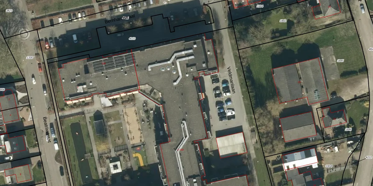 Het perceel waarop Bernhardstraat 160 staat heeft een oppervlakte van 1,2 ha. Dit is een zeer groot perceel. De perceeloppervlakte wordt geregistreerd door het Kadaster. Gedetailleerde informatie over de maten van dit perceel kunt u vinden in het rapport Kadastrale kaart met maatvoering van Bernhardstraat 160.
