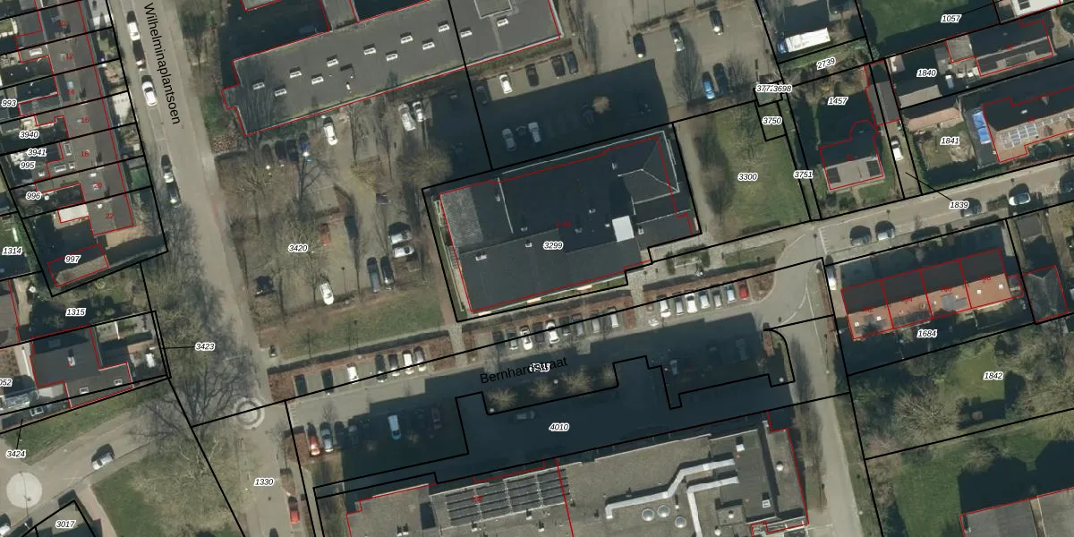 Het perceel waarop Bernhardstraat 19 staat heeft een oppervlakte van 1199 m². Dit is een zeer groot perceel. De perceeloppervlakte wordt geregistreerd door het Kadaster. Gedetailleerde informatie over de maten van dit perceel kunt u vinden in het rapport Kadastrale kaart met maatvoering van Bernhardstraat 19.