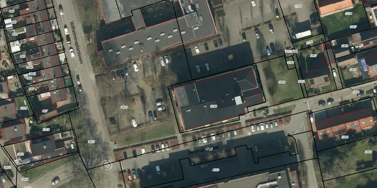 Het perceel waarop Bernhardstraat 31 staat heeft een oppervlakte van 1199 m². Dit is een zeer groot perceel. De perceeloppervlakte wordt geregistreerd door het Kadaster. Gedetailleerde informatie over de maten van dit perceel kunt u vinden in het rapport Kadastrale kaart met maatvoering van Bernhardstraat 31.