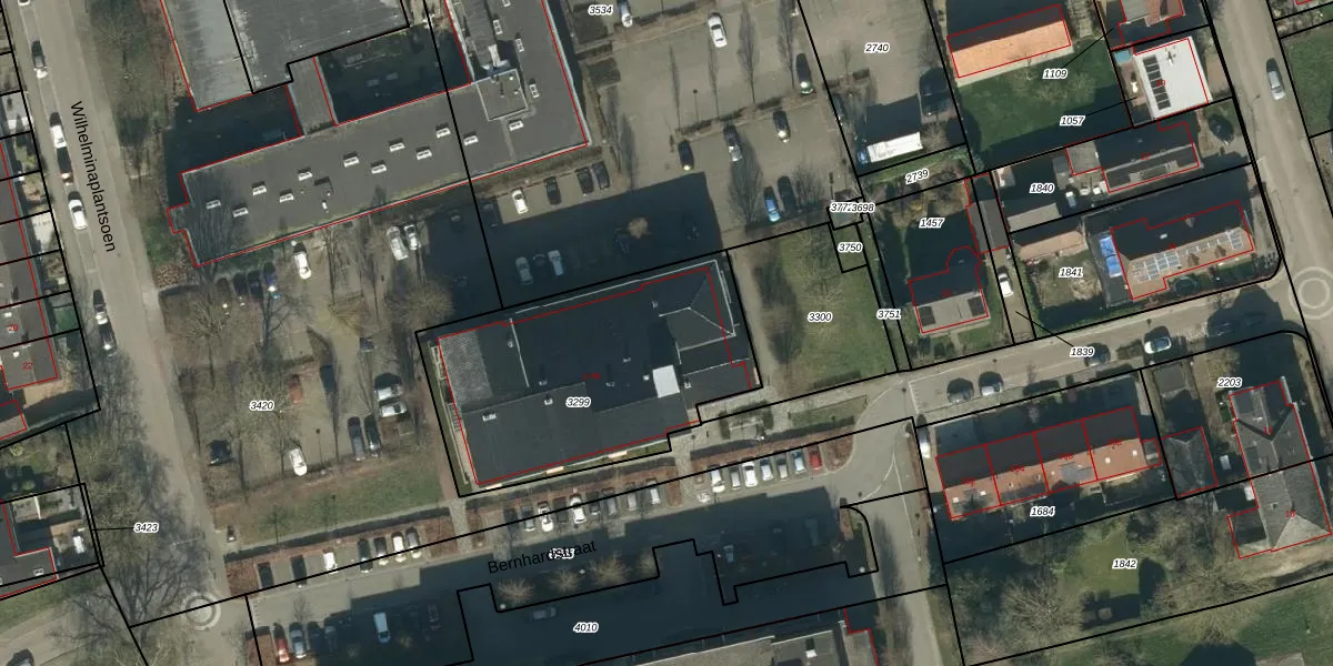 Het perceel waarop Bernhardstraat 47 staat heeft een oppervlakte van 1199 m². Dit is een zeer groot perceel. De perceeloppervlakte wordt geregistreerd door het Kadaster. Gedetailleerde informatie over de maten van dit perceel kunt u vinden in het rapport Kadastrale kaart met maatvoering van Bernhardstraat 47.