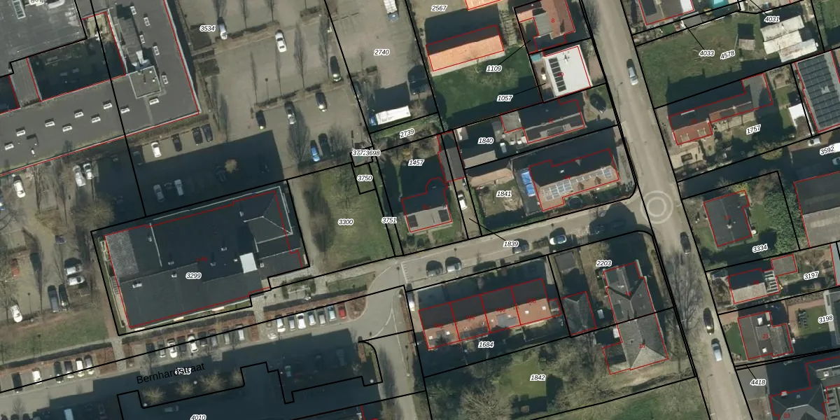 Gebruik de zoekbalk of klik op een perceel voor informatie over de adressen binnen dit perceel.
