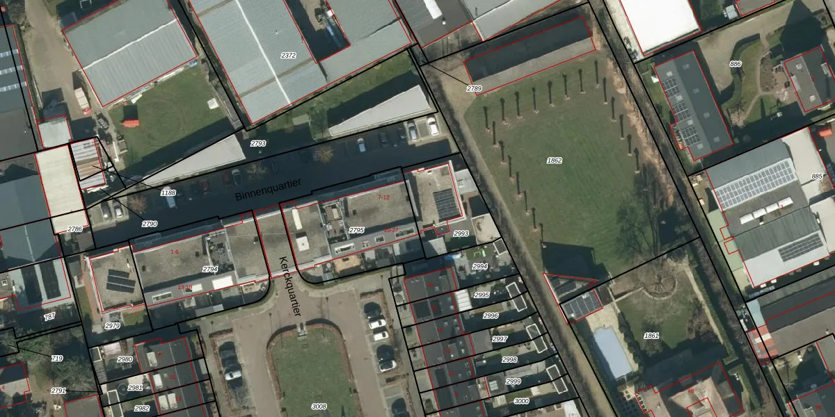 Het perceel waarop Binnenquartier 24 staat heeft een oppervlakte van 381 m². Dit is een groot perceel. De perceeloppervlakte wordt geregistreerd door het Kadaster. Gedetailleerde informatie over de maten van dit perceel kunt u vinden in het rapport Kadastrale kaart met maatvoering van Binnenquartier 24.