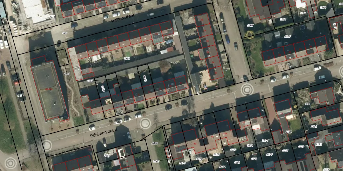 Het perceel waarop Edelmanstraat 15 staat heeft een oppervlakte van 5302 m². Dit is een zeer groot perceel. De perceeloppervlakte wordt geregistreerd door het Kadaster. Gedetailleerde informatie over de maten van dit perceel kunt u vinden in het rapport Kadastrale kaart met maatvoering van Edelmanstraat 15.