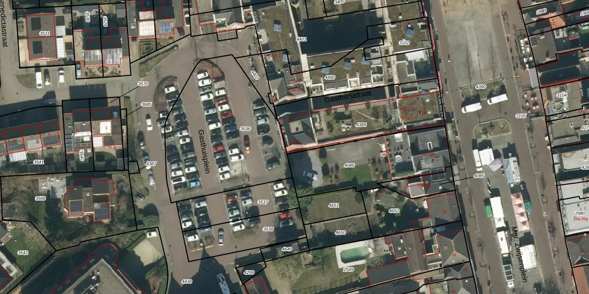 Gasthuisstraat 66 is gelegen op kadastraal perceel MDL01K4384. Deze kadastrale aanduiding is uniek en wordt gebruikt door het Kadaster om eigendomsrechten en andere zakelijke rechten vast te leggen. Het perceel maakt onderdeel uit van de kadastrale gemeente Maasdriel.