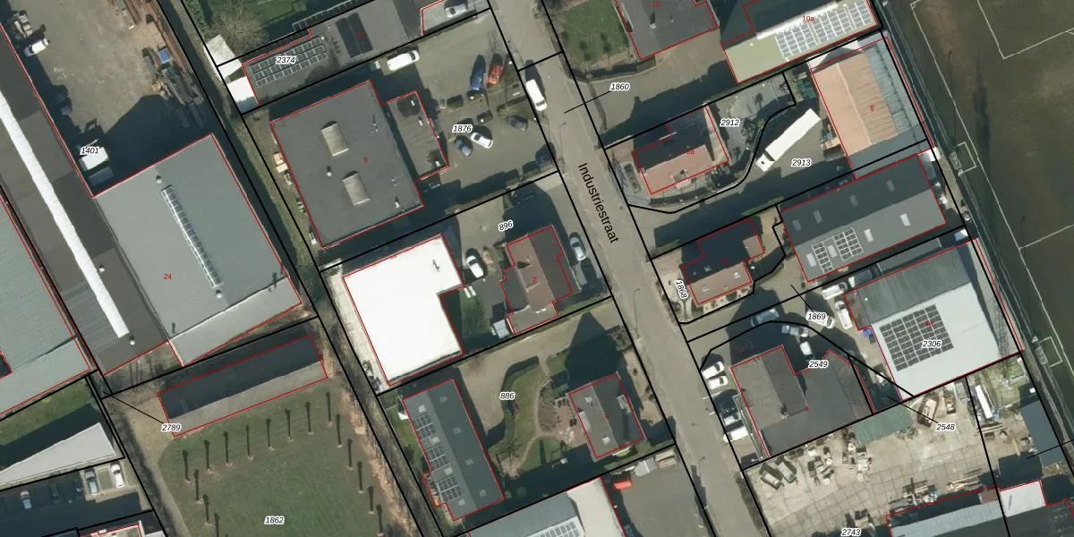 Het perceel waarop Industriestraat 7 staat heeft een oppervlakte van 1230 m². Dit is een zeer groot perceel. De perceeloppervlakte wordt geregistreerd door het Kadaster. Gedetailleerde informatie over de maten van dit perceel kunt u vinden in het rapport Kadastrale kaart met maatvoering van Industriestraat 7.