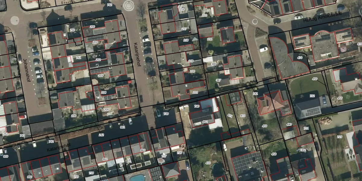 Het perceel waarop Katarijnehof 11 staat heeft een oppervlakte van 223 m². Dit is een middelgroot perceel. De perceeloppervlakte wordt geregistreerd door het Kadaster. Gedetailleerde informatie over de maten van dit perceel kunt u vinden in het rapport Kadastrale kaart met maatvoering van Katarijnehof 11.