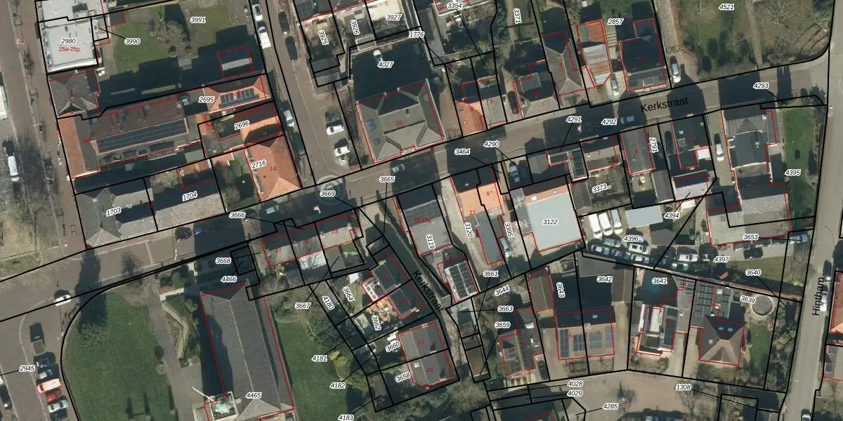Kerkstraat 13 is gelegen op kadastraal perceel MDL01K3119. Deze kadastrale aanduiding is uniek en wordt gebruikt door het Kadaster om eigendomsrechten en andere zakelijke rechten vast te leggen. Het perceel maakt onderdeel uit van de kadastrale gemeente Maasdriel.