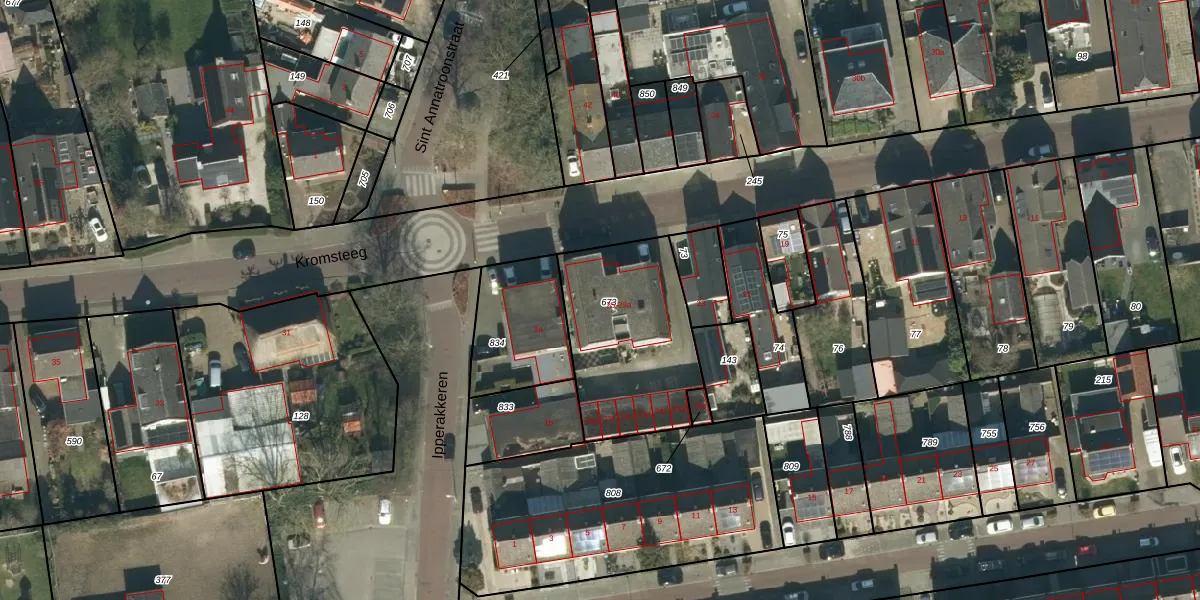 Het perceel waarop Kromsteeg 27-a staat heeft een oppervlakte van 637 m². Dit is een groot perceel. De perceeloppervlakte wordt geregistreerd door het Kadaster. Gedetailleerde informatie over de maten van dit perceel kunt u vinden in het rapport Kadastrale kaart met maatvoering van Kromsteeg 27-a.