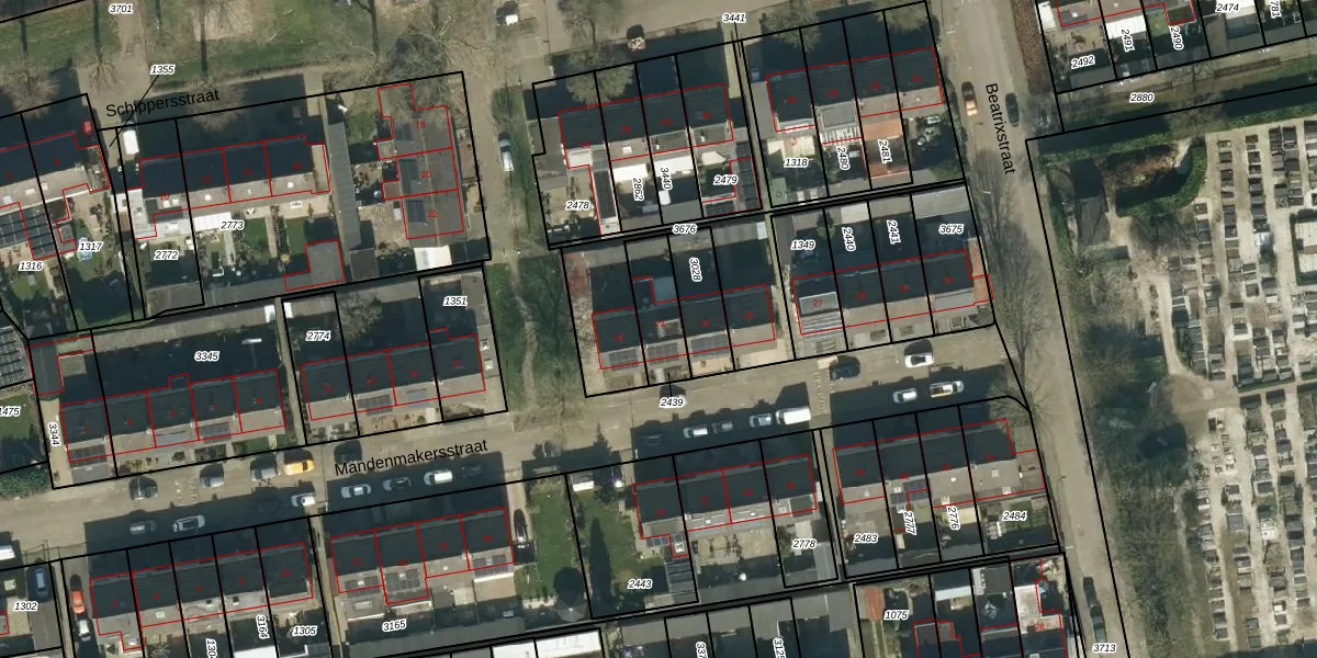 Gebruik de zoekbalk of klik op een perceel voor informatie over de adressen binnen dit perceel.